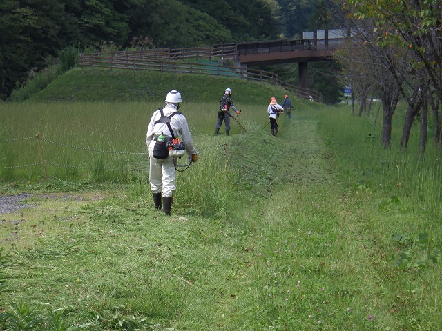 救命救急講習の後、午後から上松町の下河原公園で草刈りのボランティア活動を行いました。前年度には大桑村でボランティア活動を行っており、これから毎年両町村でボランティア活動を行っていく予定です。草の多い場所でしたが全員で整備することができました。